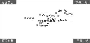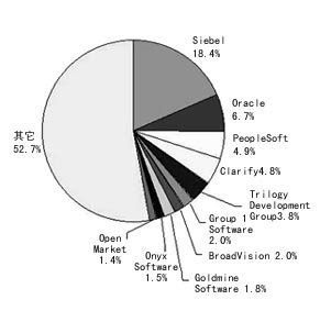 就CRM的廠商來講,市場份額比較分散,而且競爭態(tài)勢變化很快。實際上,除了前五名的廠商外,其它廠商的市場份額不超過2%,其中大多數(shù)CRM廠商是在過去18個月才推出CRM產品。