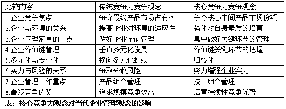 。2)核心競爭力觀念對當代企業(yè)管理理念的影響