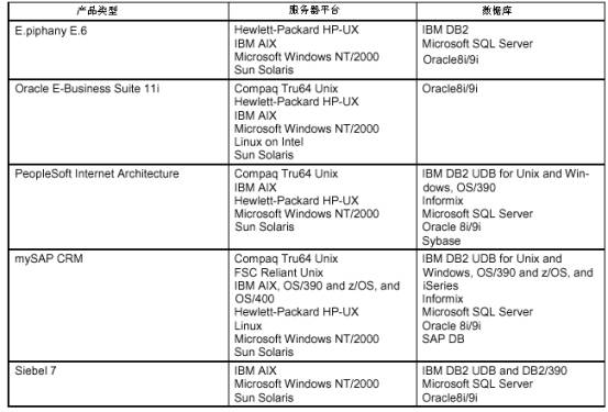 有些環(huán)境是軟件所必須要支持的。技術(shù)架構(gòu)必須要支持Microsoft NT/2000、Sun Solaris服務(wù)器平臺、IBM DB2、Microsoft SQL Server和Oracle Server管理系統(tǒng)。這些都是世界領(lǐng)先的系統(tǒng)環(huán)境,而且也是企業(yè)最可能要使用到的系統(tǒng)。因此如果產(chǎn)品不能支持這些環(huán)境顯然會(huì)產(chǎn)生很大的局限性。從上表我們可以看出,除了Oracle外都能夠支持這些“必須的“環(huán)境。(因?yàn)镺racle必須要支持自己的數(shù)據(jù)庫。)