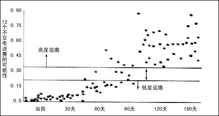 這樣,Bell Atlantic就能計算出有關(guān)客戶的概率可能性,包括客戶從一個月未交電話費到兩個月未交的可能性;客戶從三個月未交電話費到變成壞債的可能性,以及壞債客戶變成死債客戶的可能性。同時,還對追交拖欠電話費用的策略提供線索,確認(rèn)哪些帳戶應(yīng)該進(jìn)行追債活動;哪些帳戶有可能拖欠電話費;并且提供量化的追債策略,對不同的帳戶采用不同的辦法。
