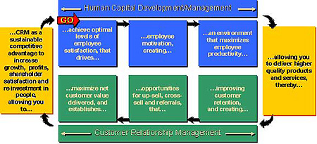 下面的圖表表示的是相對于特定CRM考慮的HR價(jià)值鏈。通往成功的CRM的道路無疑將從“人”中穿越而過。