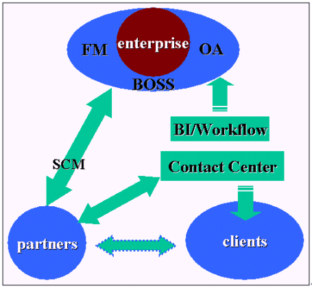 根據(jù)上面的分析SCN新一代客戶聯(lián)絡(luò)中心建成后將具備較強的雙向交互能力,為了更好的統(tǒng)一和完善整個客戶關(guān)系管理框架,我們希望盡可能的將企業(yè)內(nèi)外的所有溝通都綜合到一個平臺,他融合了企業(yè)的主頁,企業(yè)的客戶聯(lián)絡(luò)中心,企業(yè)的內(nèi)部辦公自動化網(wǎng),企業(yè)資源管理系統(tǒng)等這樣客戶只需要通過這樣的一個平臺便可解決所有問題,或者說是客戶、員工等企業(yè)相關(guān)的任何個體之間的交流可以有多個表現(xiàn)形式如電話,電郵,網(wǎng)絡(luò),辦公自動化系統(tǒng),短信等等但最終都轉(zhuǎn)移到同一個平臺上來實現(xiàn)交換。為什么需要這樣呢?只有這樣才能最好的實現(xiàn)統(tǒng)一信息。信息統(tǒng)一了,我們就可以建立客戶資訊的數(shù)據(jù)倉庫了,有了統(tǒng)一的數(shù)據(jù)信息,任何基于客戶的分析、細分都可以實現(xiàn),而客戶的任何遺留痕跡如嗜好,習慣,忠誠度,消費意愿等等都可以方便的提取,最后通過商業(yè)智能輔助進行客戶生命周期管理、市場營銷、財務(wù)管理和戰(zhàn)略決策等。形成一個良性循環(huán)的客戶關(guān)系管理生態(tài)鏈。由于客戶關(guān)系管理將涉及到各部門之間的協(xié)調(diào)和合作,業(yè)務(wù)模式變革等眾多方面,在此不作詳細的描敘,本人將在另外的文章中專門來探討客戶關(guān)系管理中長遠規(guī)劃的問題。