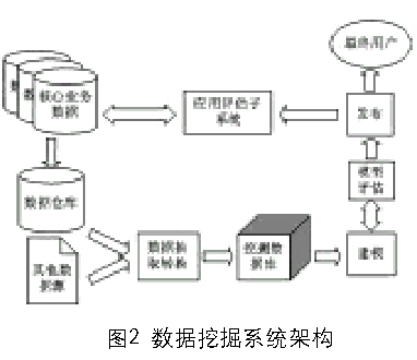 規(guī)則生成子系統(tǒng)主要完成根據(jù)數(shù)據(jù)倉(cāng)庫(kù)提供的保單歷史數(shù)據(jù),統(tǒng)計(jì)并產(chǎn)生相關(guān)規(guī)律,并輸出相關(guān)結(jié)果。具體包括數(shù)據(jù)抽取轉(zhuǎn)換、挖掘數(shù)據(jù)庫(kù)建立、建模(其中包括了參數(shù)設(shè)置)、模型評(píng)估、結(jié)果發(fā)布。發(fā)布的對(duì)象是高層決策者,同時(shí)將模型提交給應(yīng)用評(píng)估子系統(tǒng).根據(jù)效果每月動(dòng)態(tài)生成新的模型。