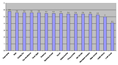 目前全球絕大多數(shù)的客戶體驗(yàn)都極為冷漠。我對(duì)歐洲所作的調(diào)研顯示人們對(duì)所有行業(yè)企業(yè)的情感依賴性相當(dāng)接近(2)。500位消費(fèi)者評(píng)出了自己的最佳客戶體驗(yàn),該調(diào)研橫跨多個(gè)行業(yè)。他們對(duì)供應(yīng)商作了如下評(píng)價(jià)(等級(jí)從0-7):