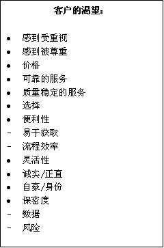 交付看得見(jiàn)的體驗(yàn)是任何一家企業(yè)成功的先決條件。產(chǎn)品質(zhì)量,價(jià)格和服務(wù)效率等等都是不容商量的。而看不見(jiàn)的情感體驗(yàn)成了企業(yè)與企業(yè)之間差距的體現(xiàn)。每個(gè)人做決策的時(shí)候,無(wú)論其年齡,性別文化背景或身分,都融入了一定的情感因素。那些情感,如被信任,被重視和被尊重的感覺(jué)都是客戶關(guān)系背后不易察覺(jué)但又不容忽視的東西。