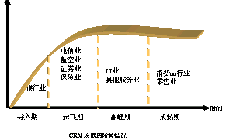 從圖中我們可以大致看出CRM的發(fā)展情況。保險(xiǎn),電信行業(yè)對(duì)這比較重視,而且得到了一定的應(yīng)用。但是在其他行業(yè)中的發(fā)展仍然比較緩慢。面對(duì)中國(guó)的龐大市場(chǎng),從CRM的發(fā)展中不難看出:會(huì)隨著經(jīng)濟(jì)的發(fā)展得到長(zhǎng)足的發(fā)展。隨著經(jīng)歷早期客戶是蒙昧期,后來是觀察期,現(xiàn)在是選擇期,CRM市場(chǎng)可能出現(xiàn)爆炸性的增長(zhǎng)。CRM本身是很好的,發(fā)展到一定階段,引導(dǎo)期已經(jīng)過了,又會(huì)發(fā)展起來。