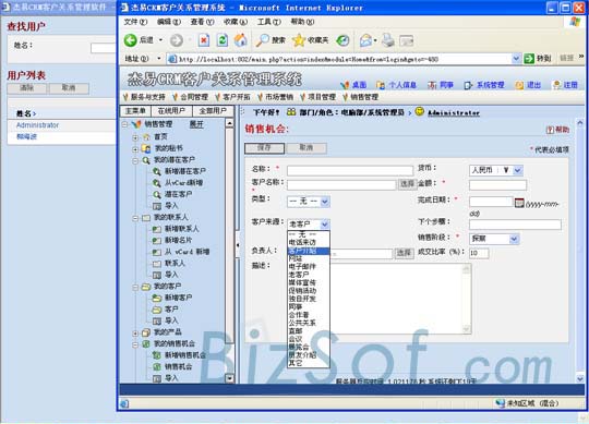 上圖是杰易CRM客戶關(guān)系管理系統(tǒng)的營(yíng)銷活動(dòng)管理模塊。該模塊將營(yíng)銷活動(dòng)和目標(biāo)管理分了七項(xiàng)管理,操作很是簡(jiǎn)單但功能還非常到位。下圖是銷售機(jī)會(huì)模塊,筆者認(rèn)為此模塊設(shè)計(jì)者的思路特別周到,用戶可以隨時(shí)對(duì)自己銷售機(jī)會(huì)的狀況有一個(gè)清晰的掌控,利于銷售進(jìn)程的安排。