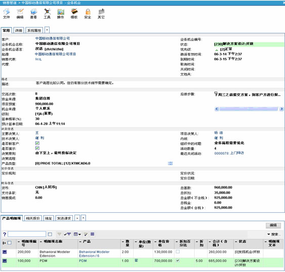 同時(shí),VamCRM融合銷(xiāo)售管道的流程化管理方法,可以有效地推進(jìn)業(yè)務(wù)進(jìn)展,管理一個(gè)完整的銷(xiāo)售過(guò)程。每次新的業(yè)務(wù)開(kāi)展時(shí),其過(guò)程都是以一個(gè)具體的線索開(kāi)始。然后,線索隨著業(yè)務(wù)發(fā)展能夠被提升和轉(zhuǎn)換為相應(yīng)的業(yè)務(wù)機(jī)會(huì),再依次提升轉(zhuǎn)換為報(bào)價(jià)、銷(xiāo)售訂單及發(fā)貨單。每一個(gè)銷(xiāo)售階段除了擁有該階段單據(jù)的關(guān)鍵業(yè)務(wù)數(shù)據(jù)外,還附帶了競(jìng)爭(zhēng)對(duì)手、備忘錄、相關(guān)活動(dòng)、聯(lián)系人、相關(guān)文檔等詳細(xì)業(yè)務(wù)信息。因此,銷(xiāo)售人員能夠便捷地管理自己每天開(kāi)展的銷(xiāo)售活動(dòng),以及下一步采取的相關(guān)行動(dòng)等業(yè)務(wù)信息。
