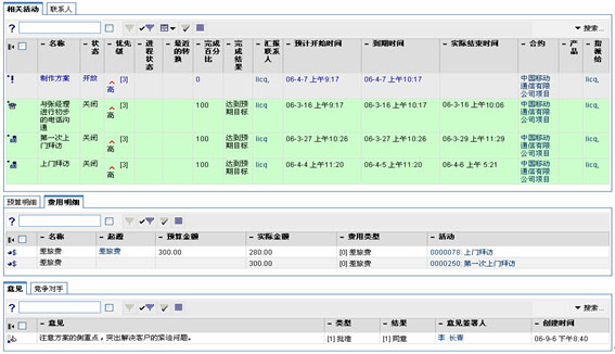 對(duì)于企業(yè)中每個(gè)業(yè)務(wù)人員每天要完成的活動(dòng)可以用圖表進(jìn)行量化表示,即以周為單位,監(jiān)控團(tuán)隊(duì)中每個(gè)人工作情況的活動(dòng)儀表盤(pán)。同時(shí),也可以生成Excel格式的報(bào)表,分別為本周已完成和下周計(jì)劃完成的活動(dòng)報(bào)表。