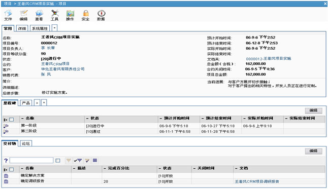 VamCRM提供專(zhuān)業(yè)的項(xiàng)目管理模塊,支持項(xiàng)目范圍管理、時(shí)間管理、資源管理、質(zhì)量管理、成本管理。支持以銷(xiāo)售合約為驅(qū)動(dòng)、過(guò)程清晰、全程受控的項(xiàng)目管理方式為客戶(hù)交付產(chǎn)品和服務(wù)。VamCRM融入成熟的項(xiàng)目管理方法和成功的實(shí)踐經(jīng)驗(yàn),從整體上對(duì)項(xiàng)目進(jìn)行規(guī)劃、組織、執(zhí)行、控制,使企業(yè)可以更加優(yōu)質(zhì)地為客戶(hù)提供長(zhǎng)期的服務(wù)。項(xiàng)目創(chuàng)建后,VamCRM系統(tǒng)會(huì)自動(dòng)生成一個(gè)與當(dāng)前項(xiàng)目相匹配的文件夾,為項(xiàng)目執(zhí)行過(guò)程中產(chǎn)生的交付物或項(xiàng)目的有關(guān)文檔提供統(tǒng)一的存檔位置;項(xiàng)目全程融合項(xiàng)目管理的方法,分里程碑管理項(xiàng)目活動(dòng)和交付物,實(shí)時(shí)統(tǒng)計(jì)項(xiàng)目的關(guān)鍵數(shù)據(jù),并且里程碑及所屬活動(dòng)和交付物等都可分狀態(tài)量化標(biāo)識(shí),對(duì)項(xiàng)目進(jìn)展做到實(shí)時(shí)監(jiān)控,避免了在項(xiàng)目實(shí)施中的“救火”行動(dòng)和盲目發(fā)展。也可自動(dòng)關(guān)聯(lián)記錄并統(tǒng)計(jì)所有項(xiàng)目進(jìn)展過(guò)程中發(fā)生的預(yù)算與費(fèi)用,實(shí)現(xiàn)項(xiàng)目費(fèi)用清晰可控。伴隨著項(xiàng)目的進(jìn)程,可以記錄所有在項(xiàng)目執(zhí)行過(guò)程中相關(guān)的聯(lián)系人、文檔、備忘錄等數(shù)據(jù),形成完整的項(xiàng)目?jī)?nèi)容集合。項(xiàng)目中還包括基于項(xiàng)目的論壇,供項(xiàng)目組成員就項(xiàng)目的相關(guān)問(wèn)題進(jìn)行在線交流,同時(shí),項(xiàng)目管理全程與企業(yè)高效協(xié)同的業(yè)務(wù)流程無(wú)縫集成,能夠使企業(yè)的相關(guān)部門(mén)以項(xiàng)目為導(dǎo)向,集中所有資源高效協(xié)同服務(wù),大大降低項(xiàng)目執(zhí)行風(fēng)險(xiǎn)。