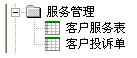 服務(wù)管理模塊由客戶投訴單和客戶服務(wù)表組成。這其中存在著一個(gè)工組流轉(zhuǎn)?头藛T填寫(xiě)客戶投訴單,技術(shù)部經(jīng)理審批客戶投訴單,被指派的人員辦理客戶服務(wù)表。