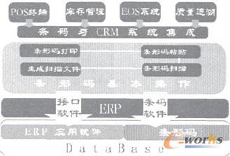 條碼技術的成熟使企業(yè)可以大范罔地得到應用,充分解決企業(yè)管理系統(tǒng)中海量數據的管理和采集的難題,把條碼技術與CRM進行無縫集成,為企業(yè)的ERP打下基礎,具體集成框架圖如圖2。