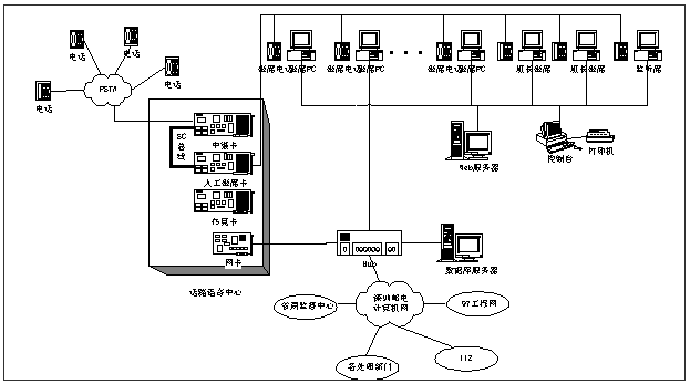 系統(tǒng)包括投訴建議處理、話路控制、秘書臺、電信業(yè)務(wù)咨詢、綜合統(tǒng)計、公告板、Web處理等業(yè)務(wù)模塊,以及系統(tǒng)用戶管理、錄音提取、基本設(shè)置、傳真管理等管理模塊,并實現(xiàn)了與97系統(tǒng)、112系統(tǒng)的互聯(lián)與資源共享。系統(tǒng)自九八年年底試運行以來,運行穩(wěn)定,為180臺受理用戶咨詢投訴的處理工作帶來較大幫助,基本解決了用戶投訴、查詢難的問題,提高了電信服務(wù)質(zhì)量,改善電信行業(yè)形象。