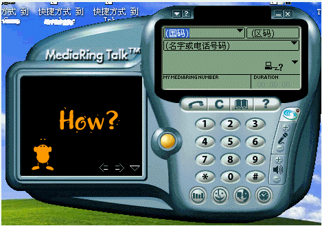 1.撥打電話:選擇所撥打電話的類型為"PC to Phone";選擇國家代碼(中國填寫86),從下拉列表中直接選擇即可;輸入城市區(qū)號,通過鍵盤輸入或在"電話機(jī)"中按鍵均可;鍵入用戶號碼;點(diǎn)擊呼叫按鈕,這時(shí)彈出一個(gè)對話框,請您輸入Value Fone帳號和密碼,正確輸入后,MediaRing 會通過服務(wù)器查找對方是否也已登錄在服務(wù)器上,如果是,對方的 MediaRing 就會自動響鈴,若對方接聽,雙方就可以通過 MediaRing 進(jìn)行通話。如果與對方?jīng)]有聯(lián)絡(luò)成功,可能是對方并不在線,此時(shí)MediaRing會詢問是否要斷開并聯(lián)絡(luò)對方,選擇“是”,接下來軟件會斷線并通過調(diào)制解調(diào)器直接向?qū)Ψ綋芴枺ㄏ喈?dāng)于通過你的電話直接撥打?qū)Ψ教柎a),對方聽到一串特殊的響鈴(兩到三聲鈴聲)后便會明白有人在網(wǎng)絡(luò)上想找他了。對方應(yīng)立即聯(lián)上Internet并使用MediaRing接聽電話。