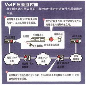 IP語音呼叫質(zhì)量無法用常規(guī)方式監(jiān)控。傳統(tǒng)的網(wǎng)絡(luò)監(jiān)控器的關(guān)注點(diǎn)是孤立的傳輸流統(tǒng)計(jì)數(shù)據(jù),而非固有的質(zhì)量、語音清晰度或最終用戶的感覺。這類傳統(tǒng)的工具提供有關(guān)鏈路吞吐量和利用率、抖動(dòng)、延時(shí)、錯(cuò)誤、包丟失總數(shù)或丟包率的孤立的數(shù)據(jù)。然而,這些統(tǒng)計(jì)數(shù)據(jù)沒有揭示呼叫質(zhì)量,因?yàn)樗鼈兒鲆暳蒜Оl(fā)丟失,不理會(huì)抖動(dòng)緩沖區(qū)造成的包丟棄,沒有考慮網(wǎng)絡(luò)故障對用戶感覺造成的影響。