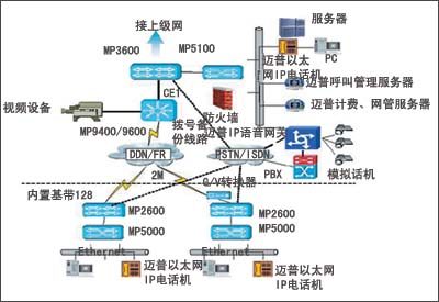 該方案中,整個(gè)網(wǎng)絡(luò)構(gòu)建基本上在原有網(wǎng)絡(luò)基礎(chǔ)之上進(jìn)行搭建,沒(méi)有影響到原有網(wǎng)絡(luò)的重建,同時(shí)還充分利用了原有的路由IP功能,優(yōu)化了網(wǎng)絡(luò)結(jié)構(gòu)。邁普IP語(yǔ)音設(shè)備完全遵循H.323標(biāo)準(zhǔn)設(shè)計(jì),可以完全同其它標(biāo)準(zhǔn)設(shè)備廠商兼容,如Cisco以太網(wǎng)電話機(jī)、路由器IP語(yǔ)音模塊等。為了充分保證用戶投資,設(shè)計(jì)時(shí)充分考慮前向兼容已有產(chǎn)品(如路由器IP語(yǔ)音模塊),后向兼容未來(lái)產(chǎn)品(如邁普高密度語(yǔ)音網(wǎng)關(guān)、邁普以太網(wǎng)電話機(jī)等)。該方案有高效的成本控制能力,MyPower
