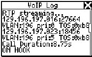 VoIP 日志顯示呼叫控制事件、QoS配置以及呼叫質(zhì)量矩陣。這一日志可以記錄呼叫建立、配置以及呼叫結(jié)束。呼叫進行中,將顯示 RTP 配置,包括IP地址和使用的端口、VLAN優(yōu)先權(quán)或服務類別和解碼信息。一旦呼叫完成,日志顯示RIP質(zhì)量矩陣,例如抖動和丟包。