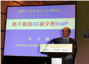 國務院發(fā)展研究中心局長鄧壽鵬的發(fā)言“處于我國3G前夕的VoIP”正式拉開了本次大會的序幕。鄧壽鵬局長的發(fā)言詳細闡述了3G和VoIP在中國的發(fā)展現(xiàn)狀,客觀分析了這兩個新技術存在的不足以及未來將帶來的巨大生產(chǎn)力進步和其中潛在的巨大商機, 對運營商傳統(tǒng)通信方式的沖擊以及對其轉型為全業(yè)務服務提供商的推動力。