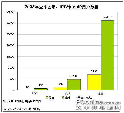 根據(jù)In-Stat最近發(fā)布的報告,VoIP技術極大推動了有線電視電話服務和用戶數(shù)增長。報告顯示,由于比傳統(tǒng)的電路交換電話成本更低,北美地區(qū)VoIP服務迅猛增長,2006年美國用戶數(shù)增加了幾乎兩倍。另外,全球各地市場也在同步增長,有線電視運營商開始考慮將電話服務捆綁銷售,推出該服務的地區(qū)包括北美洲、歐洲和一些亞洲國家。在一些國家,基于VoIP有線電視電話用戶數(shù)已經(jīng)超過電路交換有線電視電話用戶數(shù)。據(jù)國外媒體報道,目前已經(jīng)有23%的中小型企業(yè)已經(jīng)采用了VoIP技術,而這個數(shù)字在未來三年內(nèi)可能上升至50%。VoIP取代傳統(tǒng)電話服務的速度要比多數(shù)人預料的快得多。