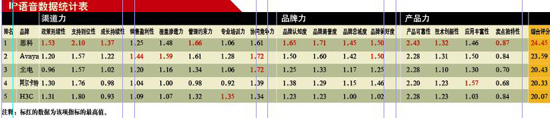 在本次IP語(yǔ)音產(chǎn)品調(diào)研中,思科以24.45的高分位居榜首,以明顯的優(yōu)勢(shì)超過(guò)其他競(jìng)爭(zhēng)對(duì)手,獲得IP語(yǔ)音產(chǎn)品的渠道冠軍。其渠道力、品牌力和產(chǎn)品力三大類指標(biāo)均名列第一,與2007年相比,思科綜合得分提高了0.95分。