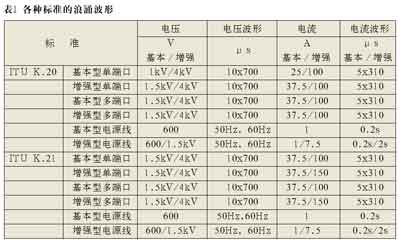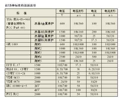 K.20/K.21(國際電信聯(lián)盟)和中國的YD/T993、950標準。不同的標準要求保護器件、技術和拓撲具有不同的穩(wěn)定性狀態(tài)。通過比較我們發(fā)現(xiàn),符合美國標準的保護器的抵御能力要比符合國際電信聯(lián)盟標準的高,更比符合中國標準的為高。在大部分情況下,符合美國標準的保護解決方案基本上都能通過ITU-T