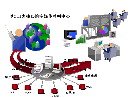 相比之下,以CTI技術(shù)為核心的呼叫中心才有可能打破這些局限,成為真正具有開放性、可靠性、靈活性、統(tǒng)一性的多媒體呼叫中心。優(yōu)利公司提供的以CTI技術(shù)為核心的呼叫中心,具有統(tǒng)一的CTI核心組件、統(tǒng)一的智能轉(zhuǎn)接策略、統(tǒng)一的呼叫統(tǒng)計和業(yè)務(wù)統(tǒng)計、統(tǒng)一的業(yè)務(wù)代表座席應(yīng)用、統(tǒng)一的管理配置環(huán)境及完善的互聯(lián)網(wǎng)服務(wù)接口功能模塊,是客戶選擇呼叫中心與互聯(lián)網(wǎng)技術(shù)相結(jié)合的有效方案之一。