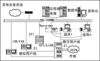 基于板卡的呼叫中心,是在微機平臺上集成各種功能的語音處理卡,完成通信接口、語音處理、傳真處理、座席轉(zhuǎn)接等功能,再結(jié)合外部的計算機網(wǎng)絡(luò)實現(xiàn)各種應(yīng)用系統(tǒng)的需求。其特點在于成本低廉、設(shè)計靈活。但是功能的升級以及穩(wěn)定性在業(yè)務(wù)量大時難于保障。