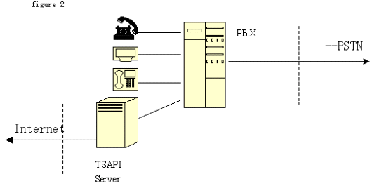 2、TSAPI技術(shù)標(biāo)準(zhǔn):由Novell公司開發(fā)。它將程控交換機(jī)或中央電話系統(tǒng)與Netware網(wǎng)絡(luò)集成在一起。可以實(shí)現(xiàn)呼叫轉(zhuǎn)移,交互式語音(IVR)和自動(dòng)呼叫分配(ACD)等功能。支持包括Windows各種版本、OS/2和Unix等目前主要操作系統(tǒng)。不同于TAPI ,TSAPI在計(jì)算機(jī)和桌面之間建立一個(gè)邏輯的連接,通過這些連接在任一端的TSAPI應(yīng)用就可以完成呼叫控制。由于TSAPI主要為Netware網(wǎng)操作系統(tǒng)增加電話服務(wù),不在每個(gè)電話和PC之間建立直接的連接,而是由一個(gè)電話服務(wù)器Netware可加載模塊(NLM)、一個(gè)電話服務(wù)器API(TSAPI)、一個(gè)電話服務(wù)器庫和一個(gè)電話客戶庫組組成在服務(wù)器電話系統(tǒng)間建立的連接,因此這個(gè)連接也稱為PBX-To-Server連接。電話服務(wù)器 NLM是負(fù)責(zé) PBX和 Netware服務(wù)器間傳送信息的。電話服務(wù)器 API是為運(yùn)行于服務(wù)器上的應(yīng)用提供電話服務(wù)器API。三方連接在客戶--服務(wù)器組網(wǎng)中比單方連接有更大的靈活性。網(wǎng)上的每個(gè)用戶都可迅速地通過現(xiàn)有的LAN基礎(chǔ)結(jié)構(gòu)撥入PBX。對其他服務(wù)的接入,如主機(jī)或終端仿真、傳真、E-mail等,都可以通過CTI接口獲得,只要這些業(yè)務(wù)已經(jīng)存在于網(wǎng)上。結(jié)構(gòu)如圖: