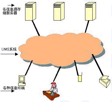 統(tǒng)一消息業(yè)務(wù)(Unified Messaging Service,以下簡(jiǎn)稱UMS) 將所有的消息類型,包括語音、電子郵件、傳真、數(shù)據(jù)以及將來的視頻信息等全部放入一個(gè)接收盒中。用戶可以在任何地點(diǎn)通過任意一種終端,比如固定電話、移動(dòng)電話、PDA、PC甚至加了機(jī)頂盒的電視機(jī)來訪問收發(fā)盒中的任何消息。UMS可以在不同媒體之間進(jìn)行轉(zhuǎn)換,比如從文本轉(zhuǎn)換成語音(Text
