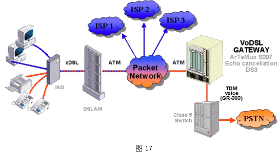 NMS提供整套ATM解決方案,下圖17給出了一個Voice Over ATM/xDSL的應(yīng)用方案。