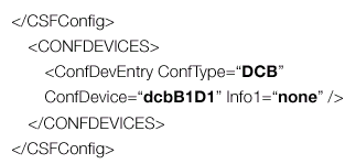 它由三個(gè)要素組成――CSFConfig、CONFDEVICES和ConfDevEntry。前兩個(gè)要素只用于為解析和數(shù)據(jù)收集過(guò)程中的每個(gè)ConfDevEntry提供環(huán)境。CONFDEVICES要素用于確定值所駐留的STL容器,容器(CONFDEVICELIST)的每個(gè)節(jié)點(diǎn)都包含一個(gè)對(duì)象,對(duì)象的成員變量名稱(chēng)類(lèi)似于XML文件中的屬性名稱(chēng)――如ConfType、ConfDevice、Info1等等。成員變量的值將為屬性的值――DCB、dcbB1D1、及空值。