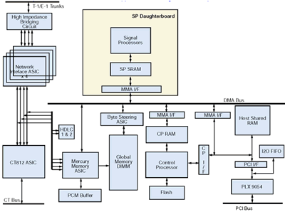 (T-1和E-1裝配有所不同) 兩塊子板上面各有一組DSP. 當(dāng)開電時電話信令協(xié)議和語音處理功能被下載到板卡上. 在處理器上作為固件存在,