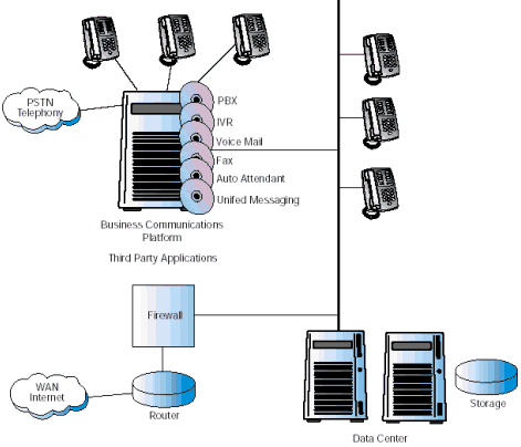數(shù)據(jù)交換和傳統(tǒng)的PBX制造商已經引入了IP-PBX系統(tǒng),該系統(tǒng)的內核設計采用了IP技術。這些系統(tǒng)的提供方式與傳統(tǒng)的PBX/KTS產品相同。這一套硬件、軟件、局站設備,即使這些部件相互通信并得到統(tǒng)一管理和監(jiān)控的系統(tǒng)的通信協(xié)議,都是由某一個廠商生產的。 采用商務通信平臺結構建造的融合的系統(tǒng),其主要區(qū)別在于采用的是通信系統(tǒng)的開放的標準的計算模型,而不是傳統(tǒng)的廠商各自的通信模型,那種廠商各自的通信模型不能