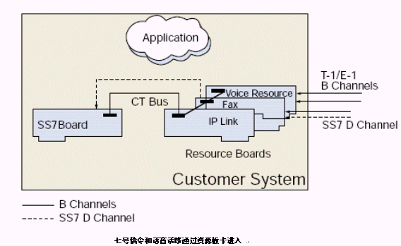 • B 通道直接通過(guò)CTbus通過(guò)七號(hào)信令板卡路由到語(yǔ)音資源板卡