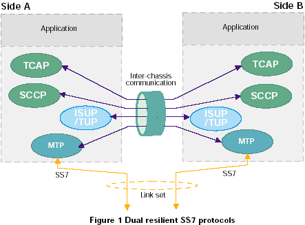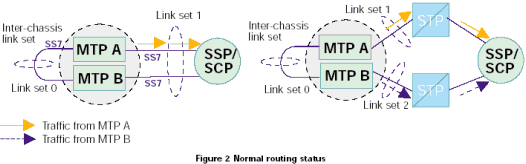 上面所列的前3個(gè)方案可以通過在兩個(gè)相鄰的節(jié)點(diǎn)之間采用多條鏈路(64或56Kbps)來(lái)實(shí)現(xiàn),最后兩個(gè)方案可以通過在兩個(gè)機(jī)箱內(nèi)采用兩個(gè)獨(dú)立但互相協(xié)作的SS7協(xié)議棧來(lái)完成。這兩個(gè)機(jī)箱在正常情況下是分開的,但可以通過互連來(lái)提供更高的抵抗故障的能力。