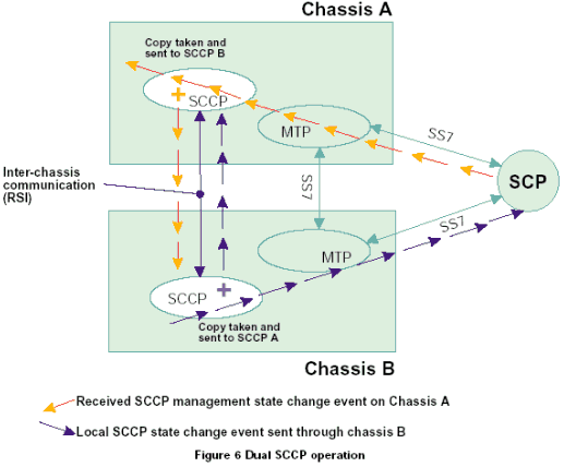 SCCP通過支持可尋址的子系統(tǒng)概念提高了消息傳遞部分(MTP)的路由能力。所有已知的本地和遠(yuǎn)端子系統(tǒng)的路由可用性(允許狀態(tài)或禁止?fàn)顟B(tài))在SCCP層中進(jìn)行管理。在一個(gè)由N個(gè)SCCP層(或多個(gè)SCCP的實(shí)例)組成作為同一節(jié)點(diǎn)編碼的系統(tǒng)中,用戶應(yīng)用程序和遠(yuǎn)端節(jié)點(diǎn)需要能夠通過任何SCCP實(shí)例交換SCCP數(shù)據(jù)消息,并且希望每個(gè)SCCP中的路由表都是相同的。為了達(dá)到這個(gè)目的,需要使用廣播機(jī)制增強(qiáng)SCCP層,這種機(jī)制將本地或遠(yuǎn)端的路由狀態(tài)的任何改變發(fā)送到廣播任務(wù)。廣播任務(wù)負(fù)責(zé)將路由變化傳送到N-1(其他)SCCP實(shí)例。在雙系統(tǒng)中,廣播任務(wù)只是另一個(gè)SCCP層,這兩層使用基于消息的API進(jìn)行通信。在一個(gè)雙機(jī)箱/子機(jī)架環(huán)境中,這些消息可以由RSI和TCP/IP組合來(lái)傳遞。