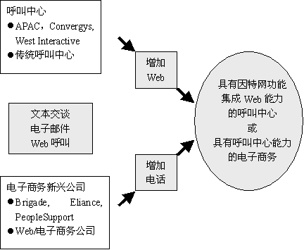 為了應(yīng)對電子商務(wù)的機(jī)遇和挑戰(zhàn),許多傳統(tǒng)的服務(wù)商紛紛增加人員和引進(jìn)技術(shù),以便能夠處理email、文本交談和web呼叫。他們通過雇傭、培訓(xùn)和交叉培訓(xùn)等方式,既可以支持現(xiàn)有的希望增加web交互服務(wù)的客戶,又能吸引新的客戶。通過增加媒體選項(xiàng),建立起呼叫中心服務(wù)的核心競爭能力。同時(shí),他們也希望用你的電子商務(wù)業(yè)務(wù)幫助他們自己的業(yè)務(wù)發(fā)展壯大。